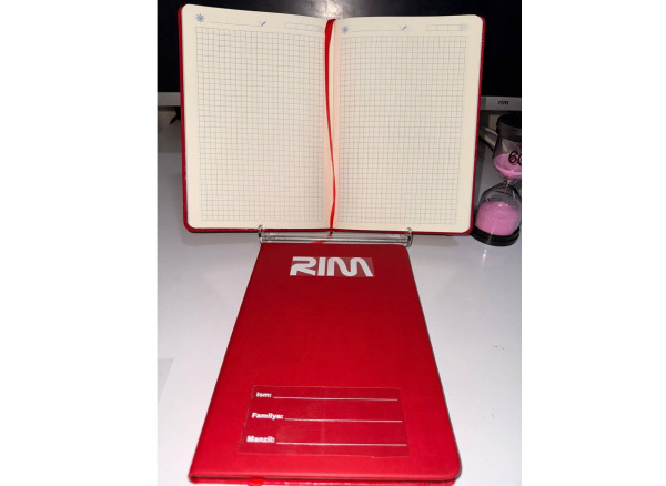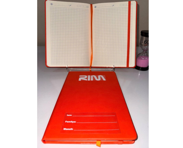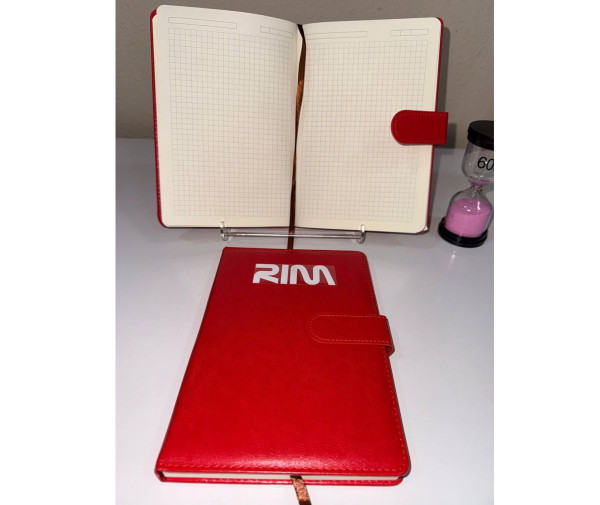 Qizil rangli, magnitli mahkamlagichga ega bloknot.