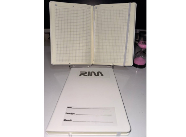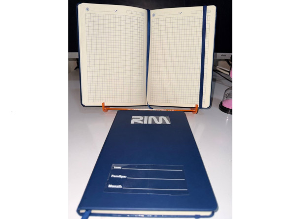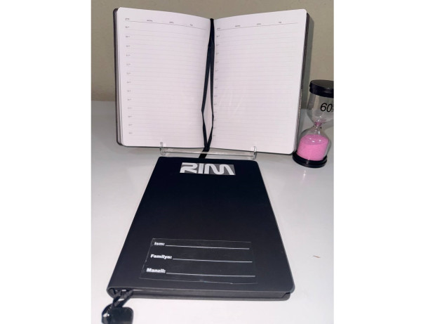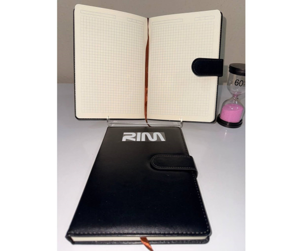 Qora rangli, magnitli mahkamlagichga ega bloknot.