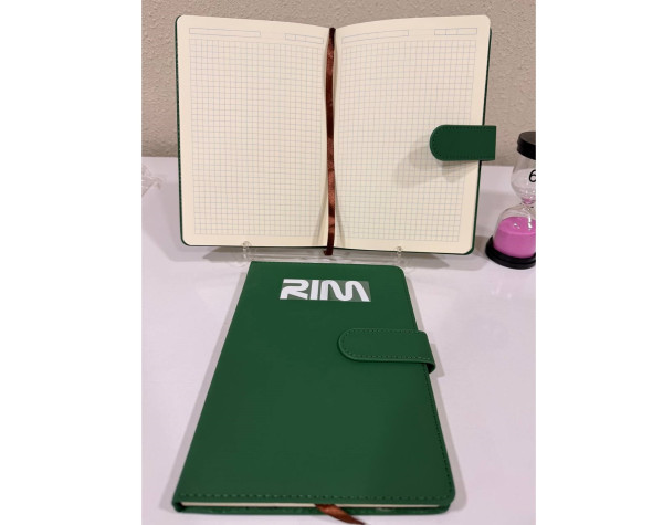 Yashil rangli, magnitli mahkamlagichga ega bloknot.