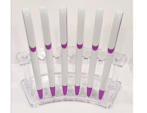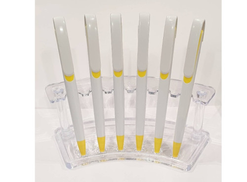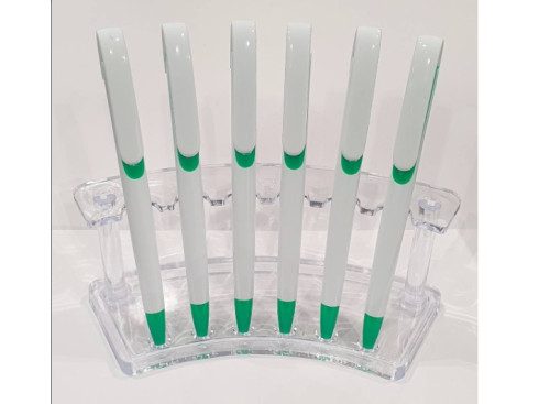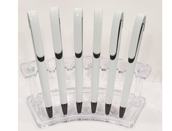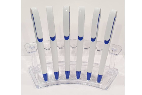 Ko‘k okantovkali oq ruchka, logotip bilan